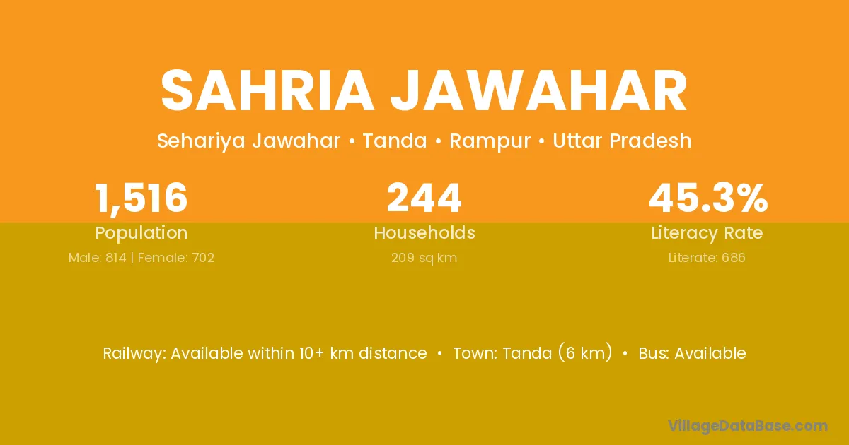 Tanda (6 km) is the nearest town to Sahria Jawahar village for major economic activities and is located approximately 6 km away.