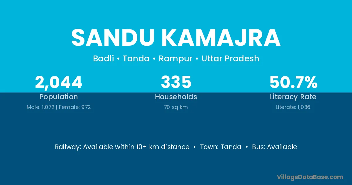 Sandu Kamajra village has a total population of 2,044 people, of which 1,072 are males and 972 are females.