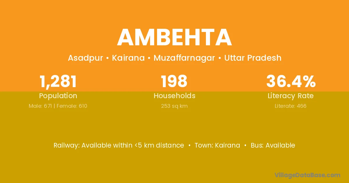 Saharanpur (32 km) is the nearest town to Ambehta village for major economic activities and is located approximately 32 km away.