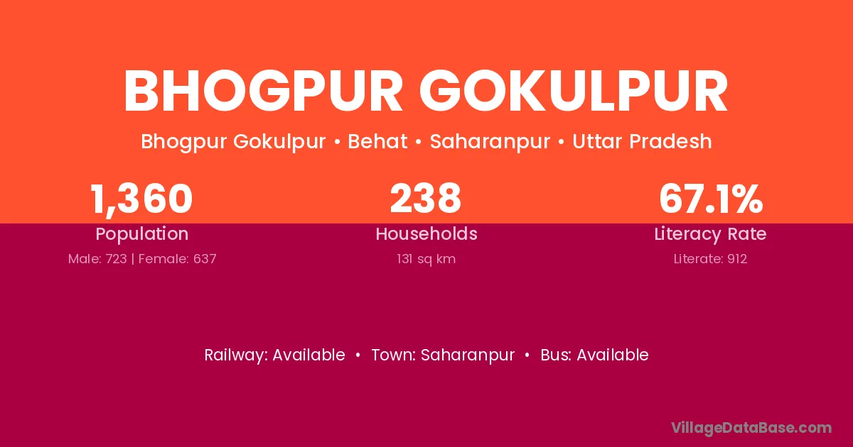 Bhogpur Gokulpur village has a total population of 1,360 people, of which 723 are males and 637 are females.