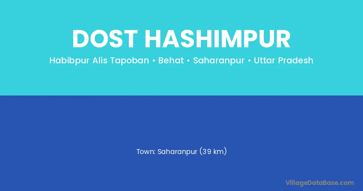 Saharanpur (39 km) is the nearest town to Dost Hashimpur village for major economic activities and is located approximately 39 km away.