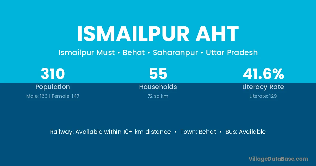 Ismailpur Aht village has a total population of 310 people, of which 163 are males and 147 are females.