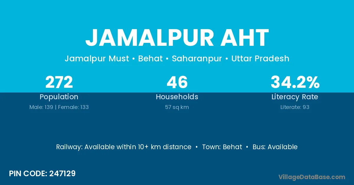 Jamalpur Aht village has a total population of 272 people, of which 139 are males and 133 are females.