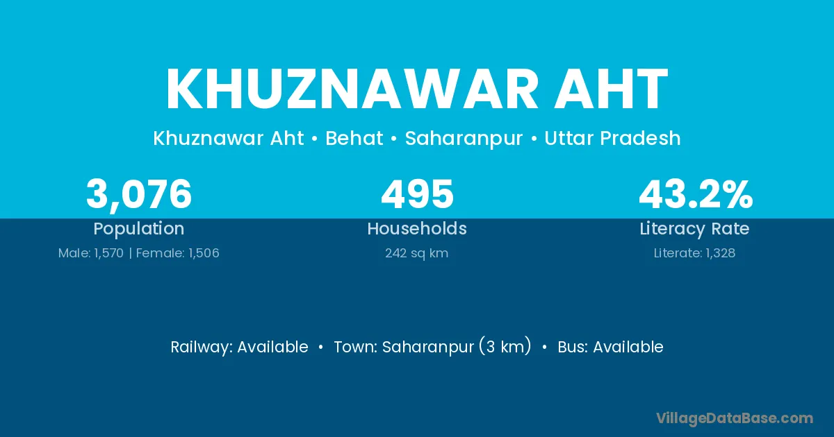 Saharanpur (3 km) is the nearest town to Khuznawar Aht village for major economic activities and is located approximately 3 km away.