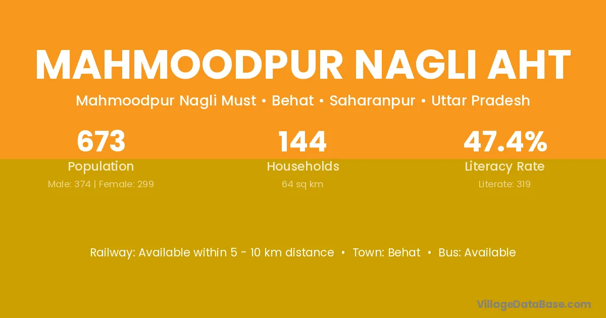 Mahmoodpur Nagli Aht village has a total population of 673 people, of which 374 are males and 299 are females.
