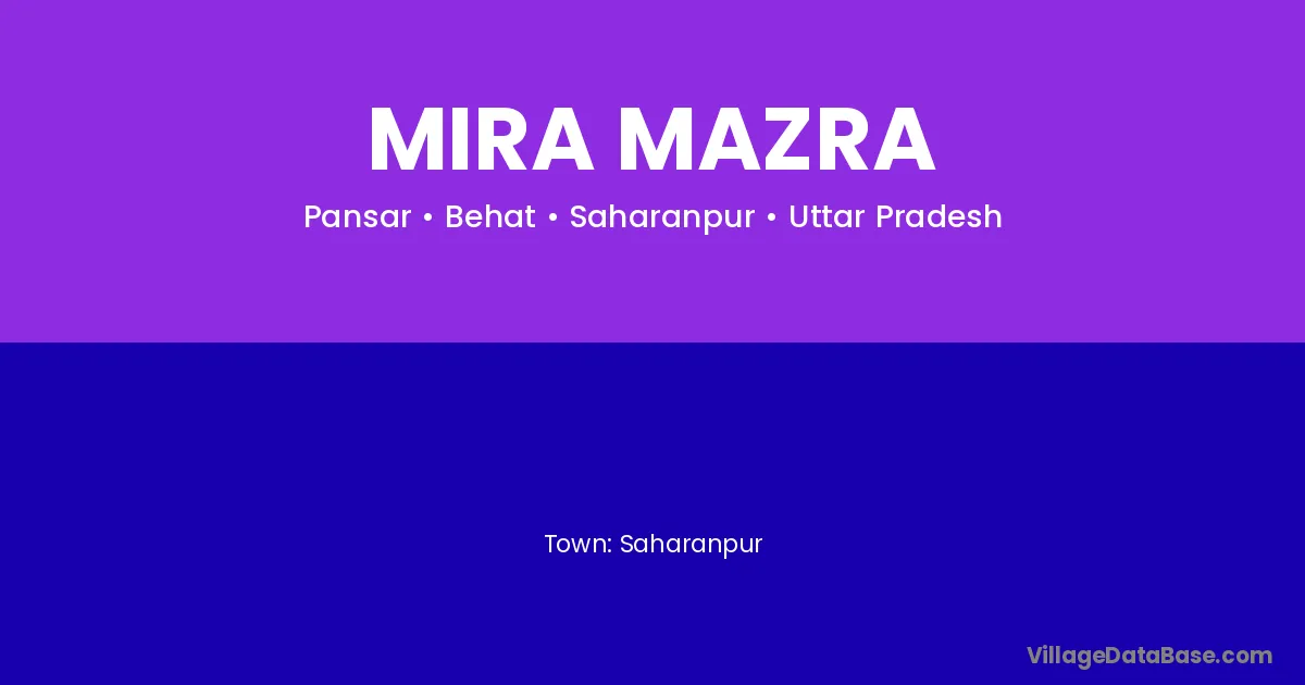 Saharanpur is the nearest town to Mira Mazra village for major economic activities
