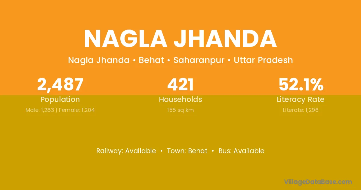 Nagla Jhanda village has a total population of 2,487 people, of which 1,283 are males and 1,204 are females.