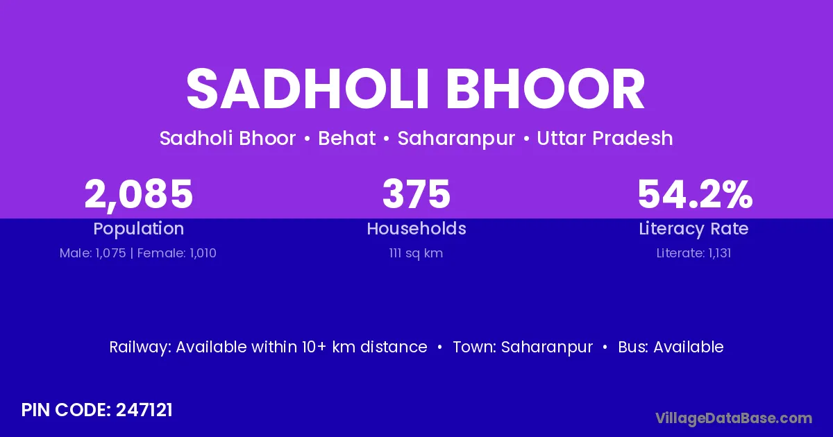 According to Census 2011 information, the village code of Sadholi Bhoor village is 247121.