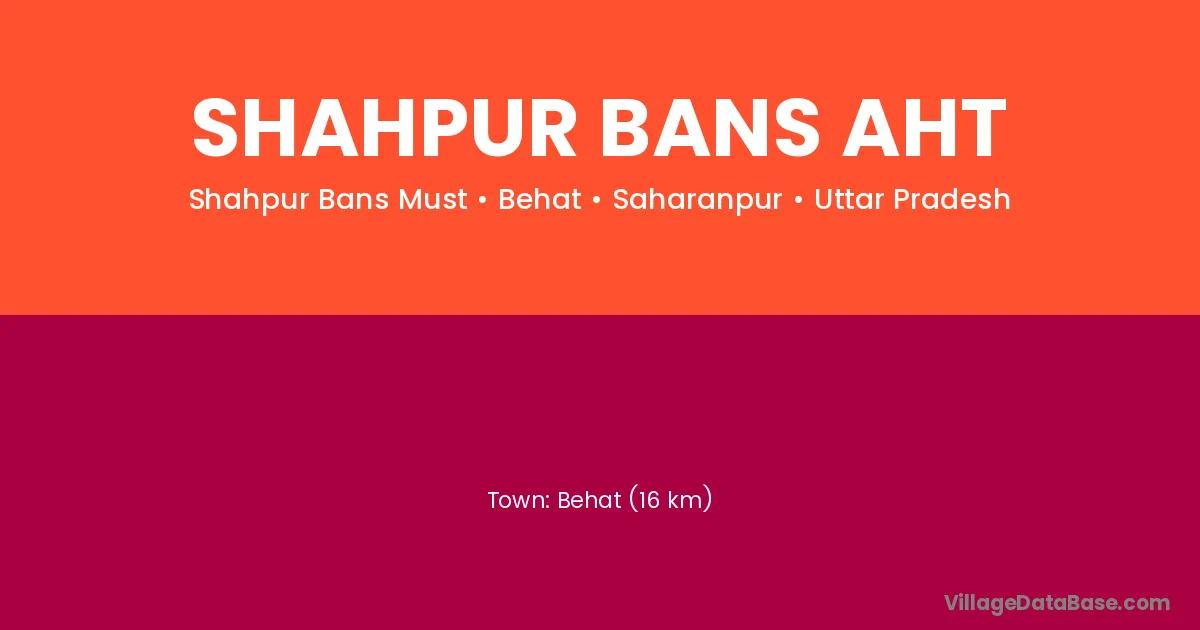 Behat (16 km) is the nearest town to Shahpur Bans Aht village for major economic activities and is located approximately 16 km away.