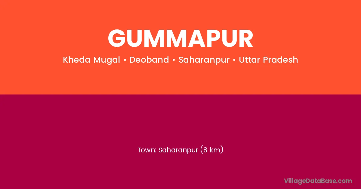 Saharanpur (8 km) is the nearest town to Gummapur village for major economic activities and is located approximately 8 km away.