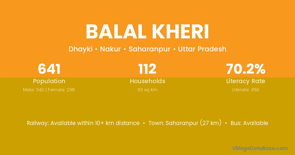 Saharanpur (27 km) is the nearest town to Balal Kheri village for major economic activities and is located approximately 27 km away.