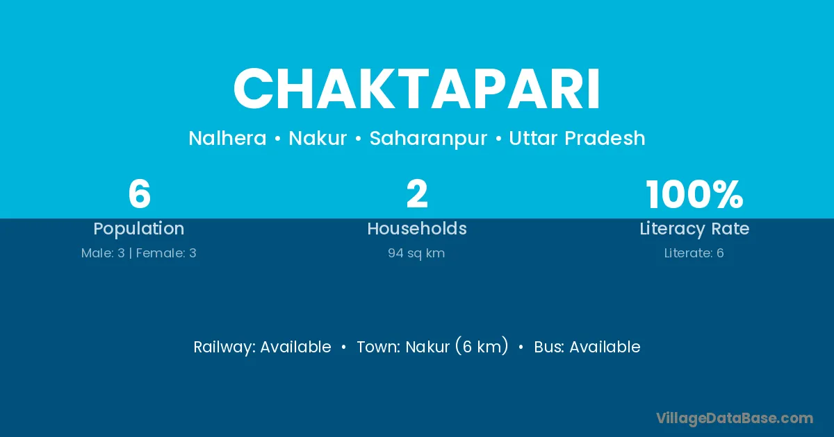 Nakur (6 km) is the nearest town to Chaktapari village for major economic activities and is located approximately 6 km away.