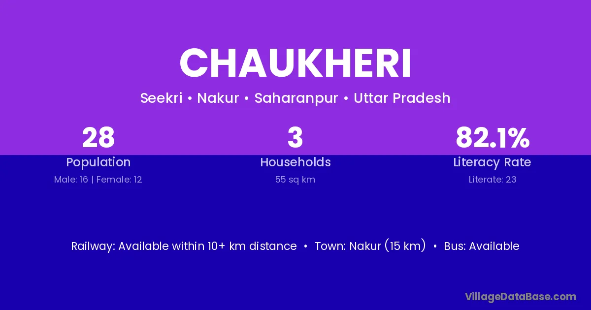 Nakur (15 km) is the nearest town to Chaukheri village for major economic activities and is located approximately 15 km away.
