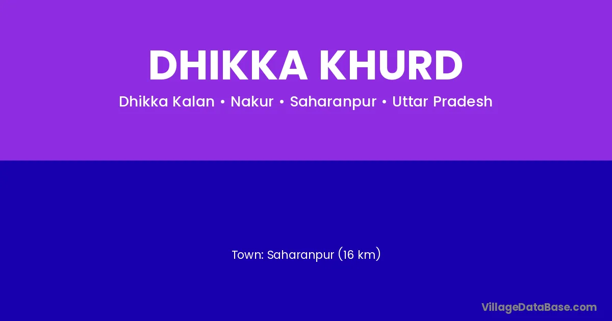 Saharanpur (16 km) is the nearest town to Dhikka Khurd village for major economic activities and is located approximately 16 km away.