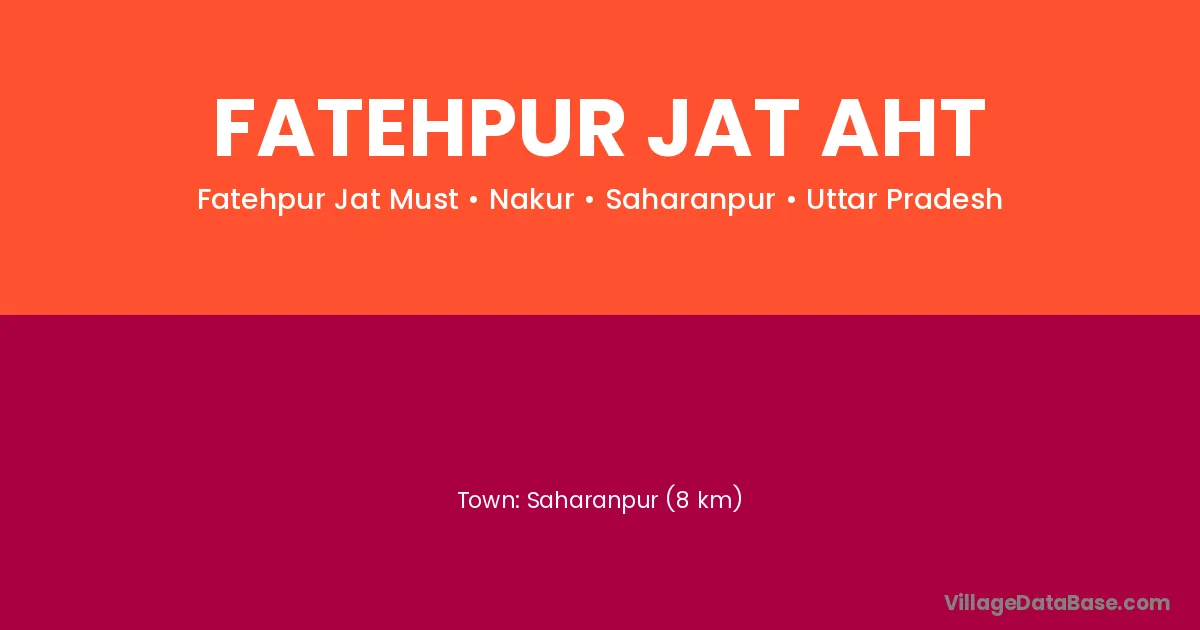 Saharanpur (8 km) is the nearest town to Fatehpur Jat Aht village for major economic activities and is located approximately 8 km away.