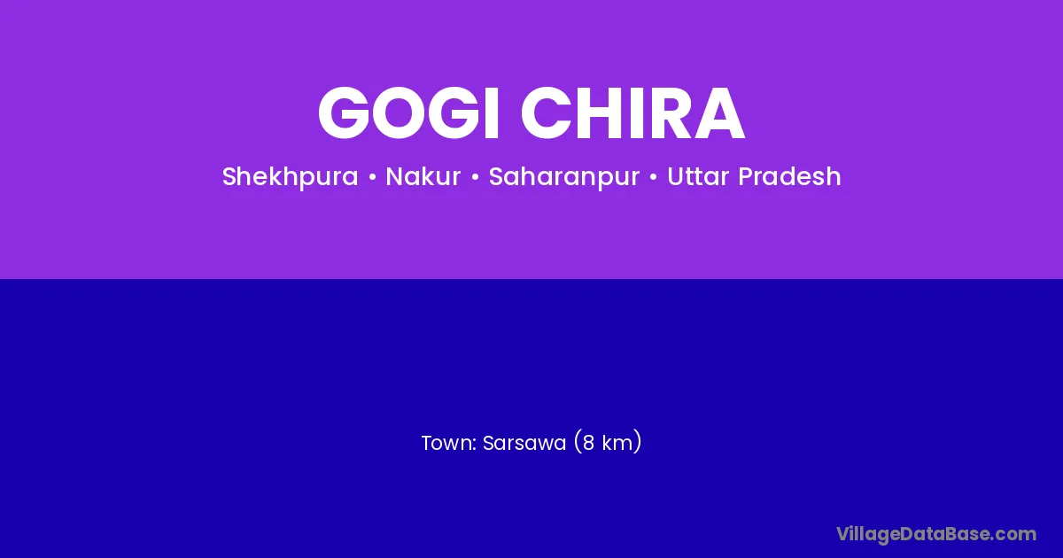 Sarsawa (8 km) is the nearest town to Gogi Chira village for major economic activities and is located approximately 8 km away.