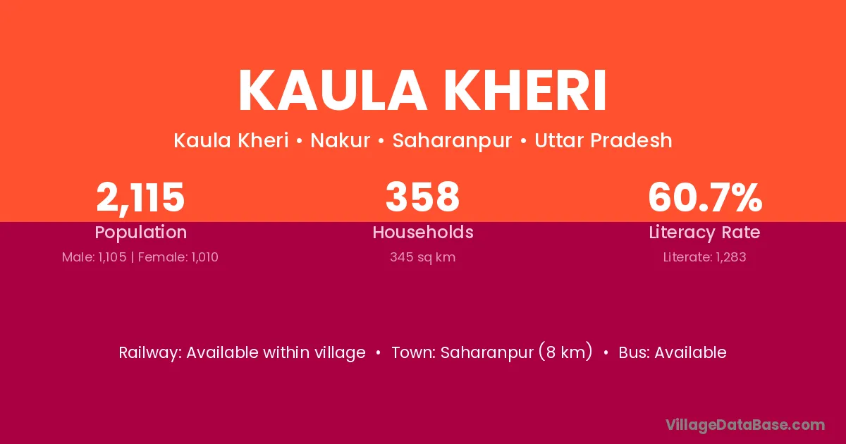 Saharanpur (8 km) is the nearest town to Kaula Kheri village for major economic activities and is located approximately 8 km away.