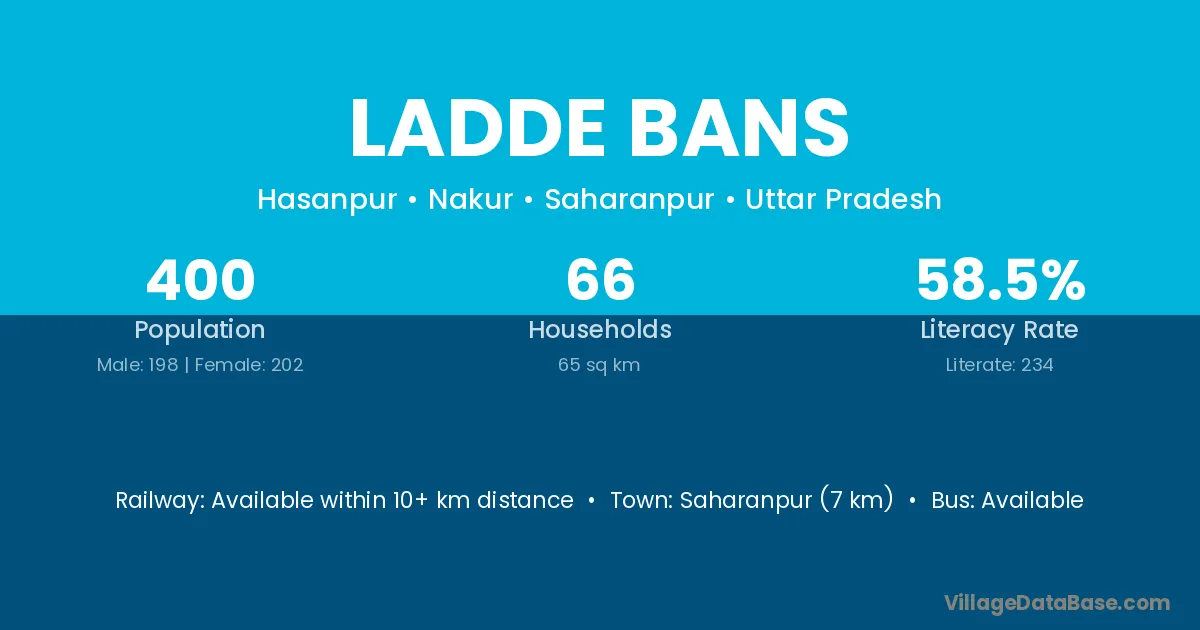 Saharanpur (7 km) is the nearest town to Ladde Bans village for major economic activities and is located approximately 7 km away.