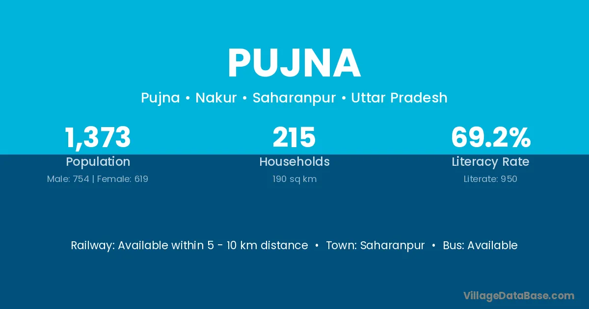 Saharanpur is the nearest town to Pujna village for major economic activities