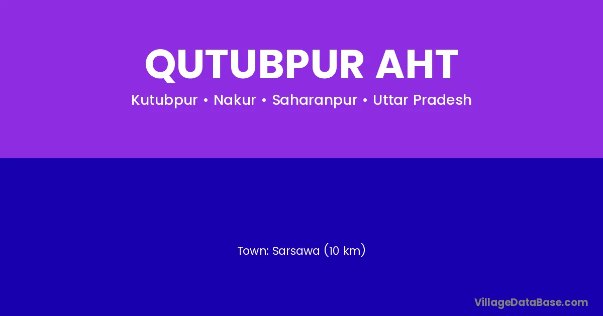 Sarsawa (10 km) is the nearest town to Qutubpur Aht village for major economic activities and is located approximately 10 km away.