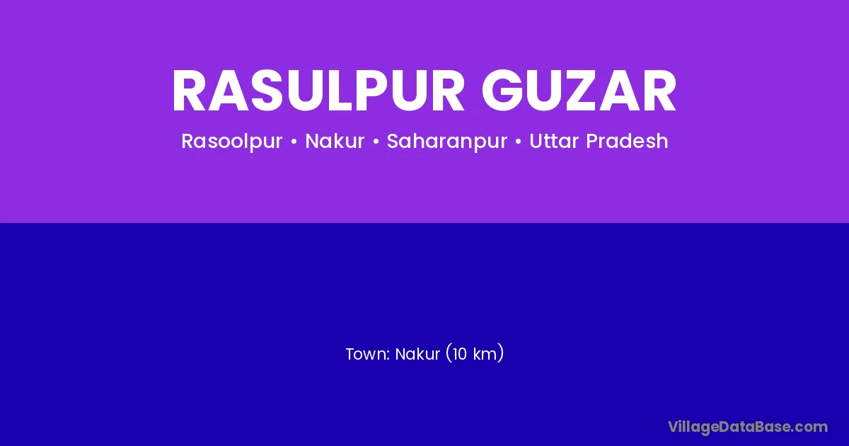 Nakur (10 km) is the nearest town to Rasulpur Guzar village for major economic activities and is located approximately 10 km away.