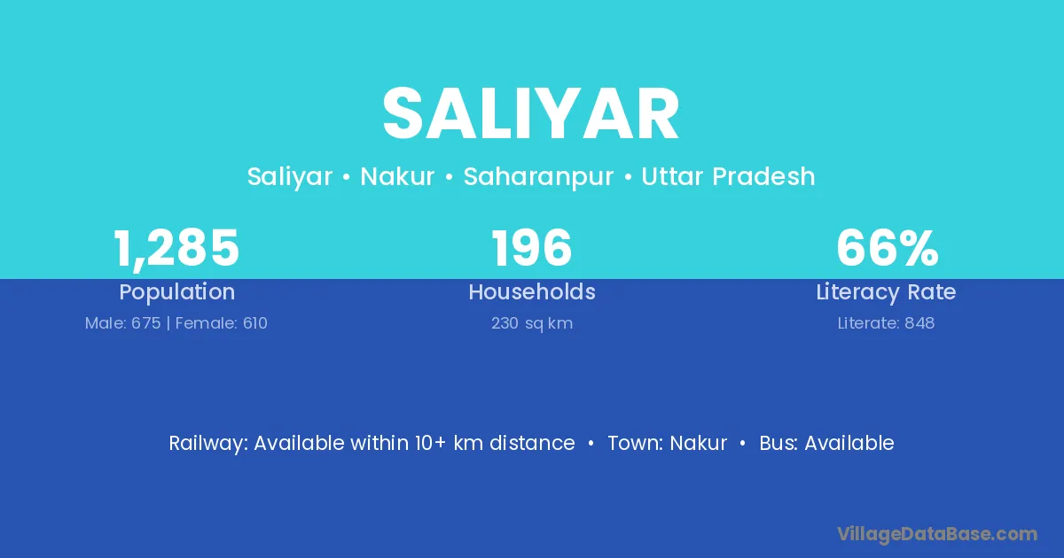 Nakur is the nearest town to Saliyar village for major economic activities