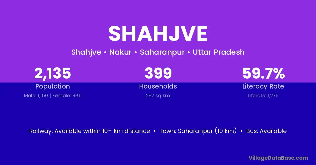 Saharanpur (10 km) is the nearest town to Shahjve village for major economic activities and is located approximately 10 km away.