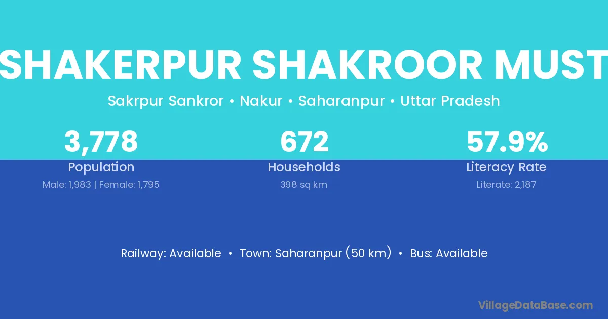 Saharanpur (50 km) is the nearest town to Shakerpur Shakroor Must village for major economic activities and is located approximately 50 km away.