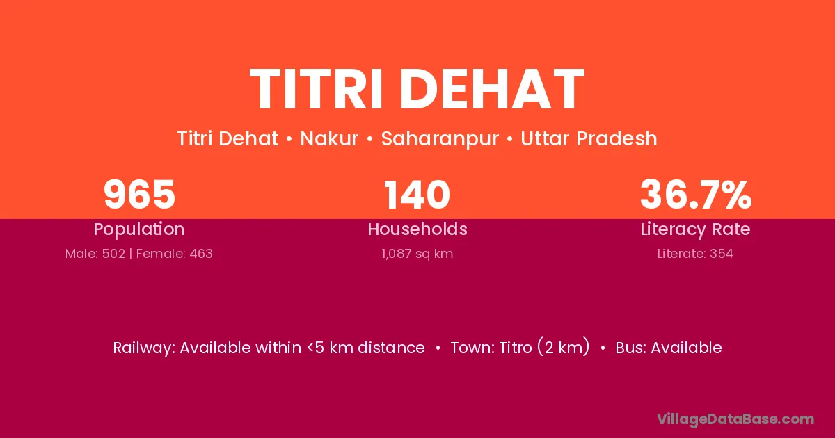 Titri Dehat village has a total population of 965 people, of which 502 are males and 463 are females.