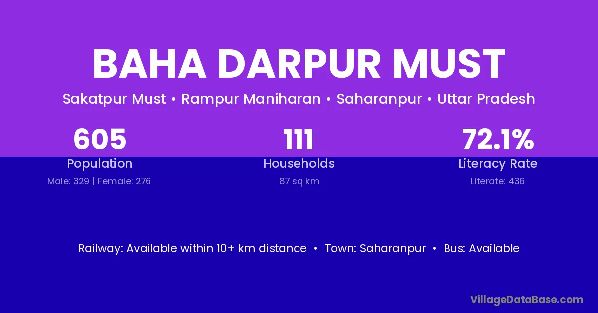 Saharanpur is the nearest town to Baha Darpur Must village for major economic activities