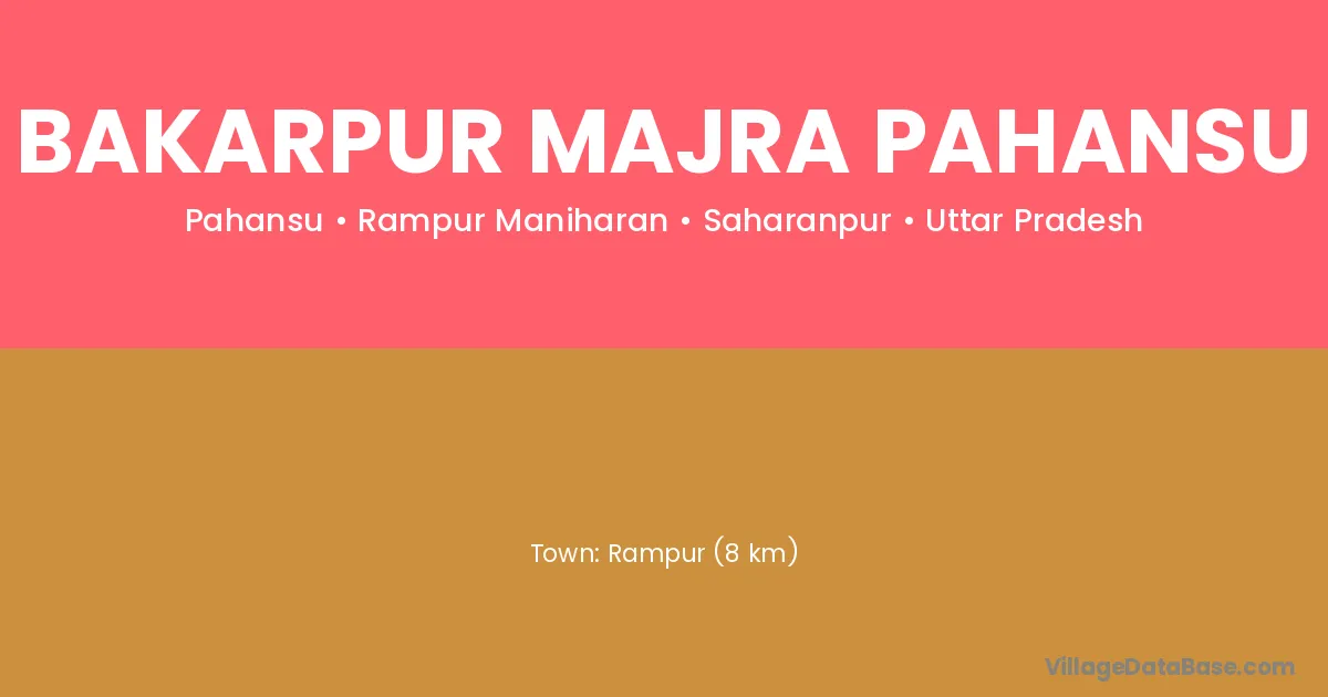 Rampur (8 km) is the nearest town to Bakarpur Majra Pahansu village for major economic activities and is located approximately 8 km away.