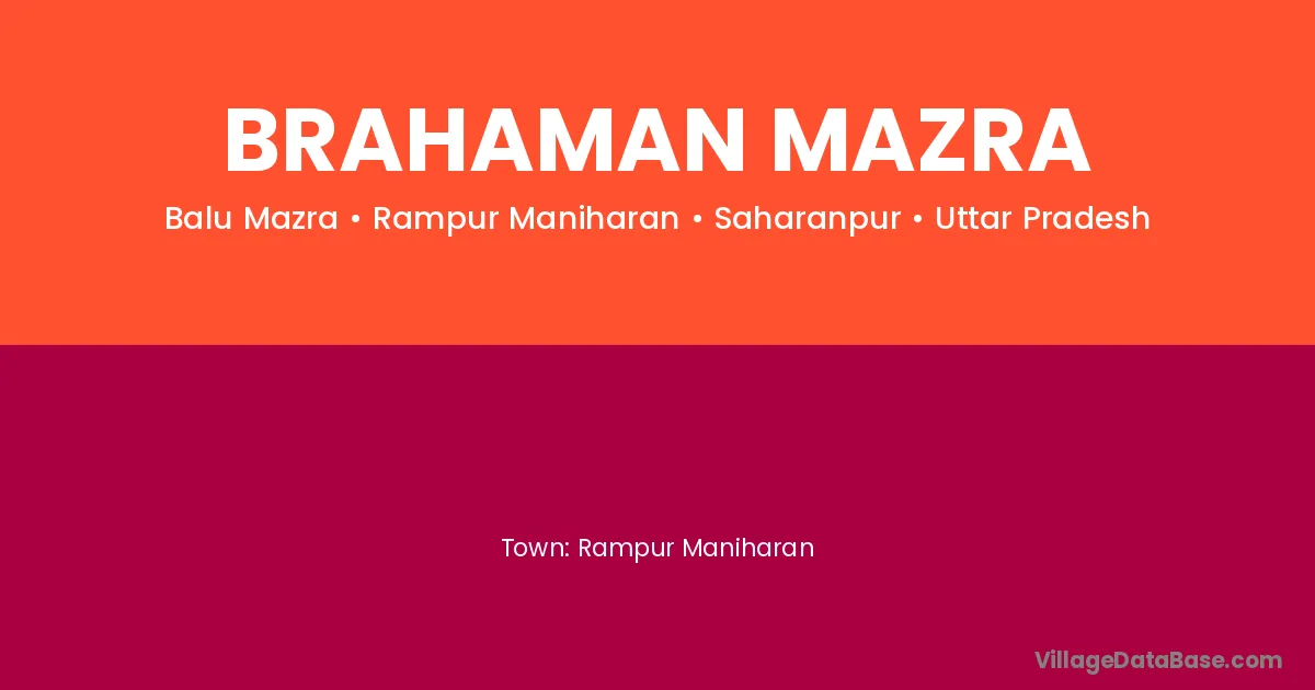 Rampur Maniharan is the nearest town to Brahaman Mazra village for major economic activities