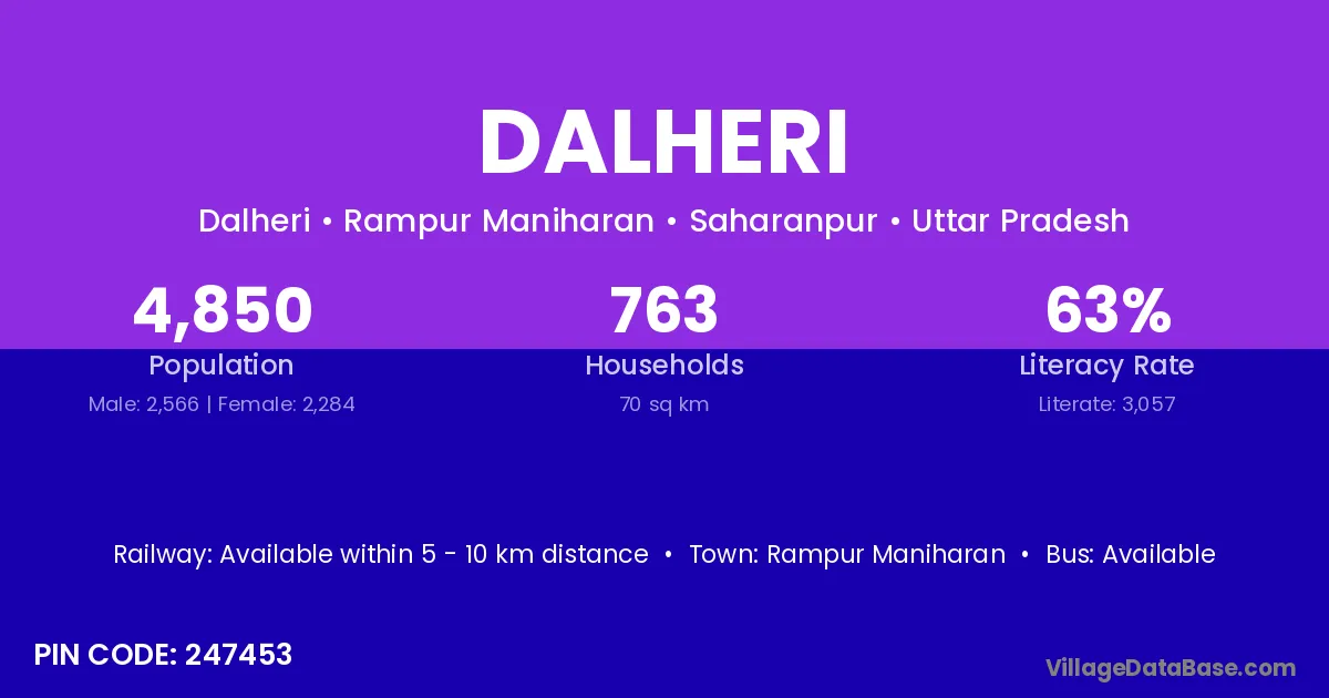Rampur Maniharan is the nearest town to Dalheri village for major economic activities