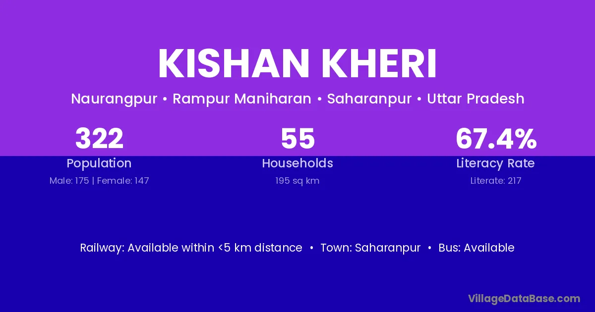 Saharanpur is the nearest town to Kishan Kheri village for major economic activities