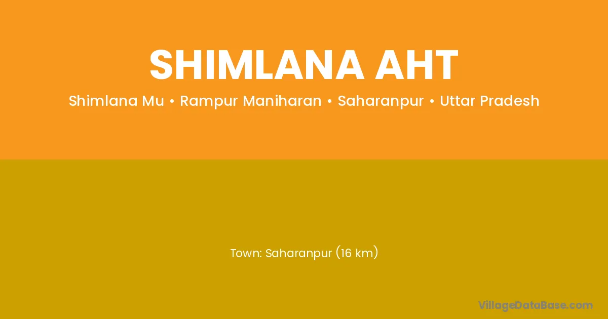 Saharanpur (16 km) is the nearest town to Shimlana Aht village for major economic activities and is located approximately 16 km away.
