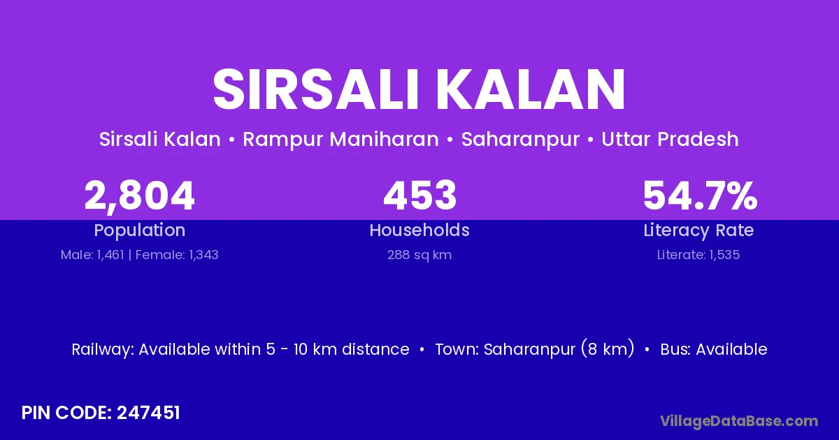 According to Census 2011 information, the village code of Sirsali Kalan village is 247451.