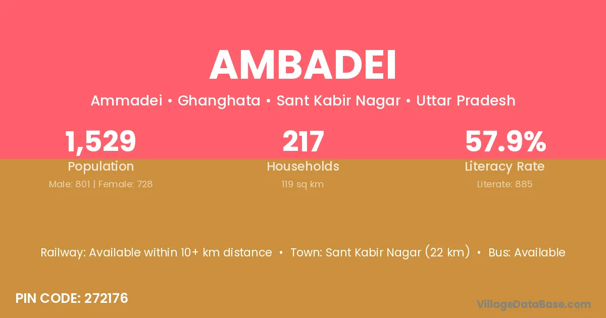 Sant Kabir Nagar (22 km) is the nearest town to Ambadei village for major economic activities and is located approximately 22 km away.