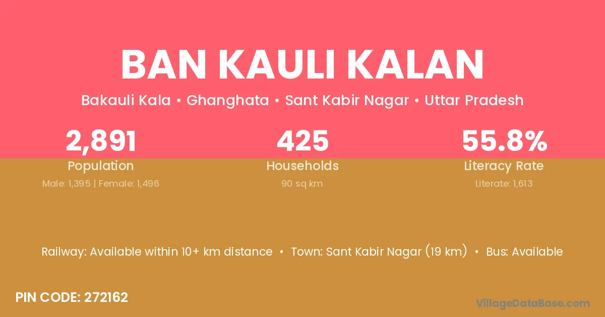 Sant Kabir Nagar (19 km) is the nearest town to Ban Kauli Kalan village for major economic activities and is located approximately 19 km away.