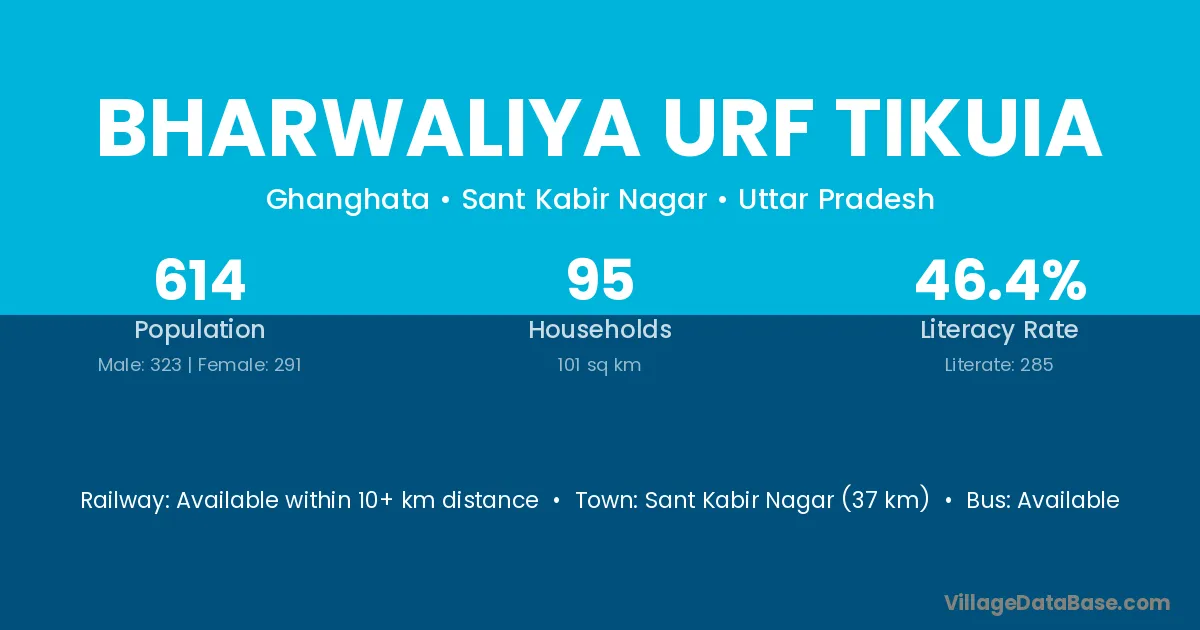 Bharwaliya Urf Tikuia village has a total population of 614 people, of which 323 are males and 291 are females.