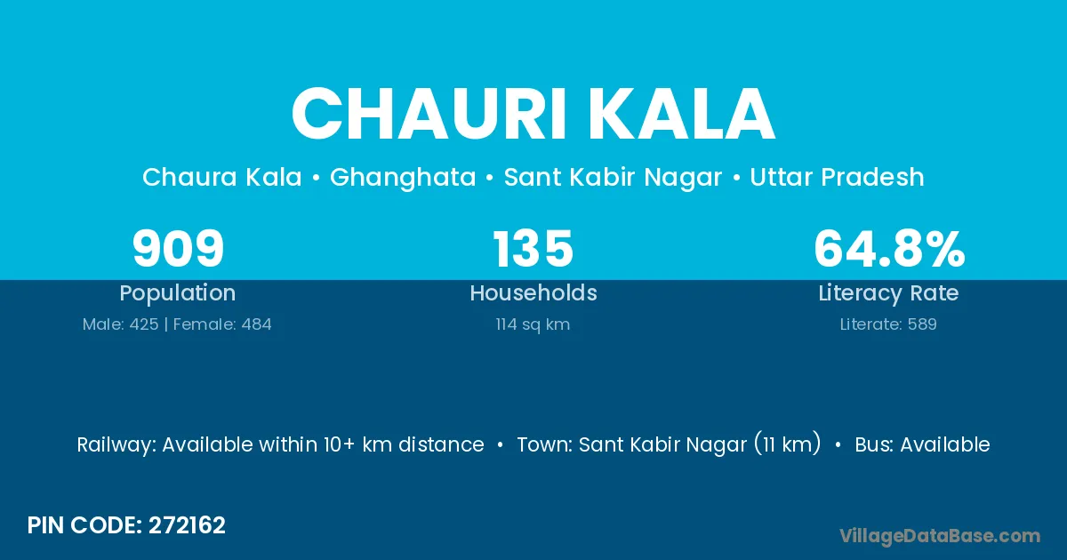 Sant Kabir Nagar (11 km) is the nearest town to Chauri Kala village for major economic activities and is located approximately 11 km away.