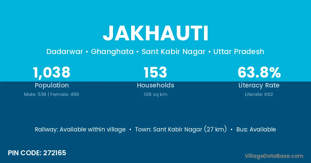 Sant Kabir Nagar (27 km) is the nearest town to Jakhauti village for major economic activities and is located approximately 27 km away.