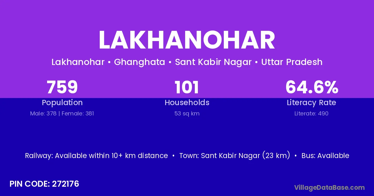 Sant Kabir Nagar (23 km) is the nearest town to Lakhanohar village for major economic activities and is located approximately 23 km away.