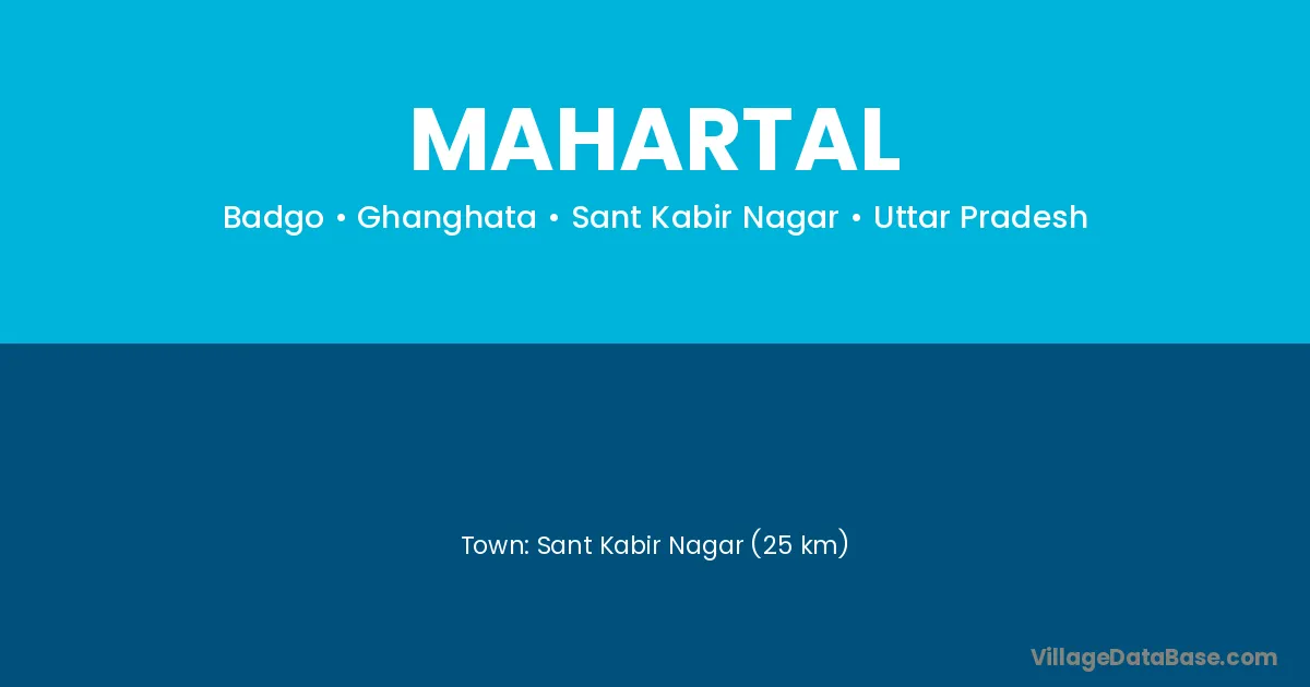 Sant Kabir Nagar (25 km) is the nearest town to Mahartal village for major economic activities and is located approximately 25 km away.