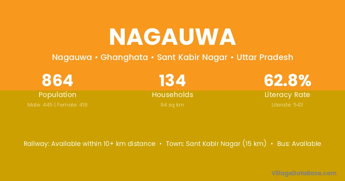 Sant Kabir Nagar (15 km) is the nearest town to Nagauwa village for major economic activities and is located approximately 15 km away.