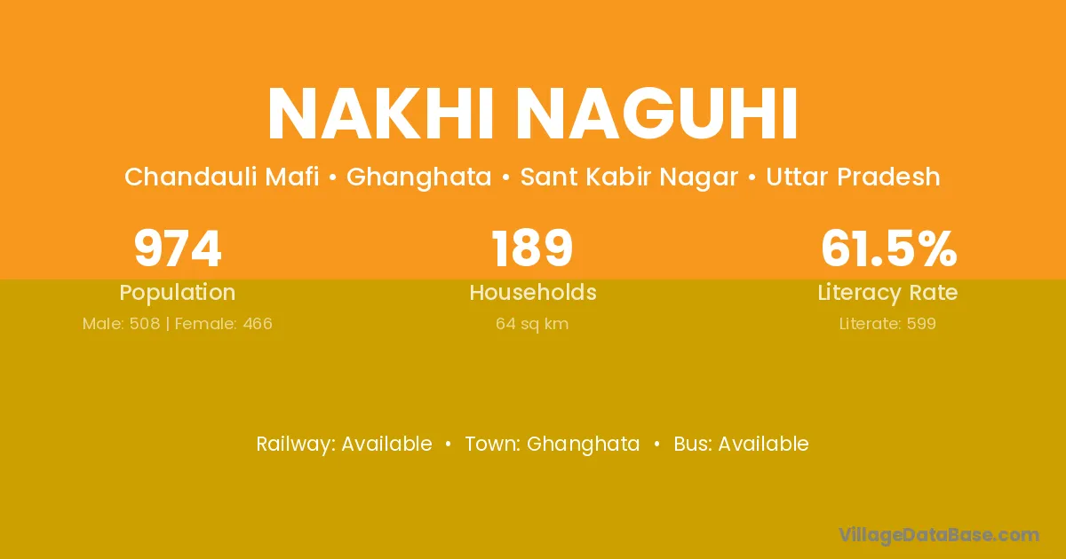 Nakhi Naguhi village has a total population of 974 people, of which 508 are males and 466 are females.