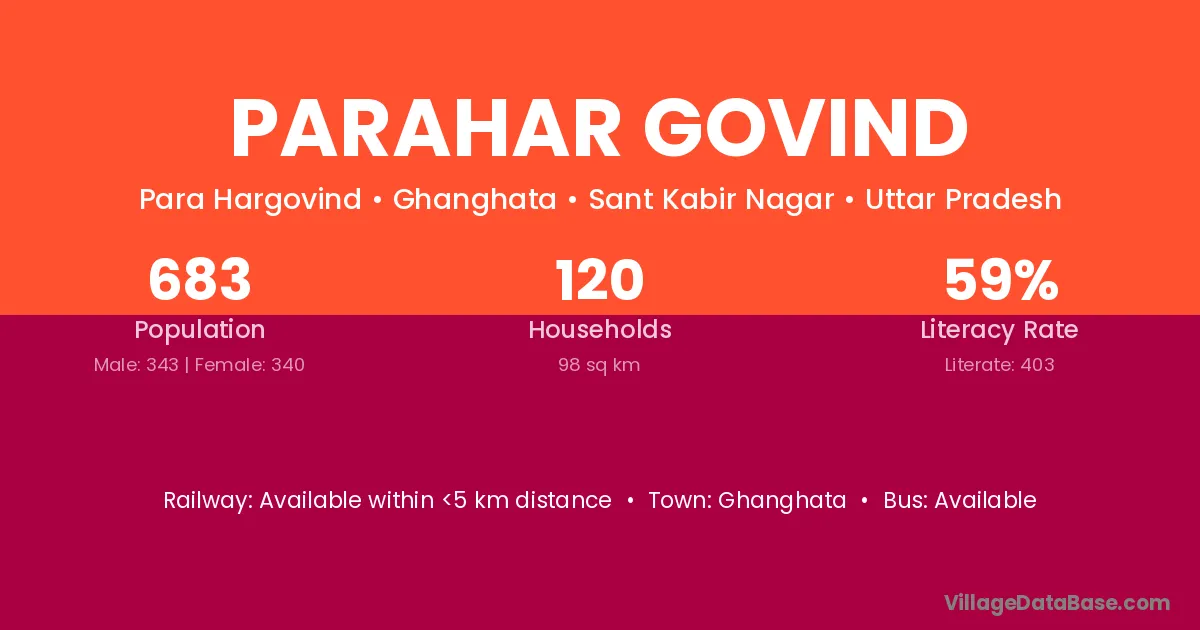 Parahar Govind village has a total population of 683 people, of which 343 are males and 340 are females.