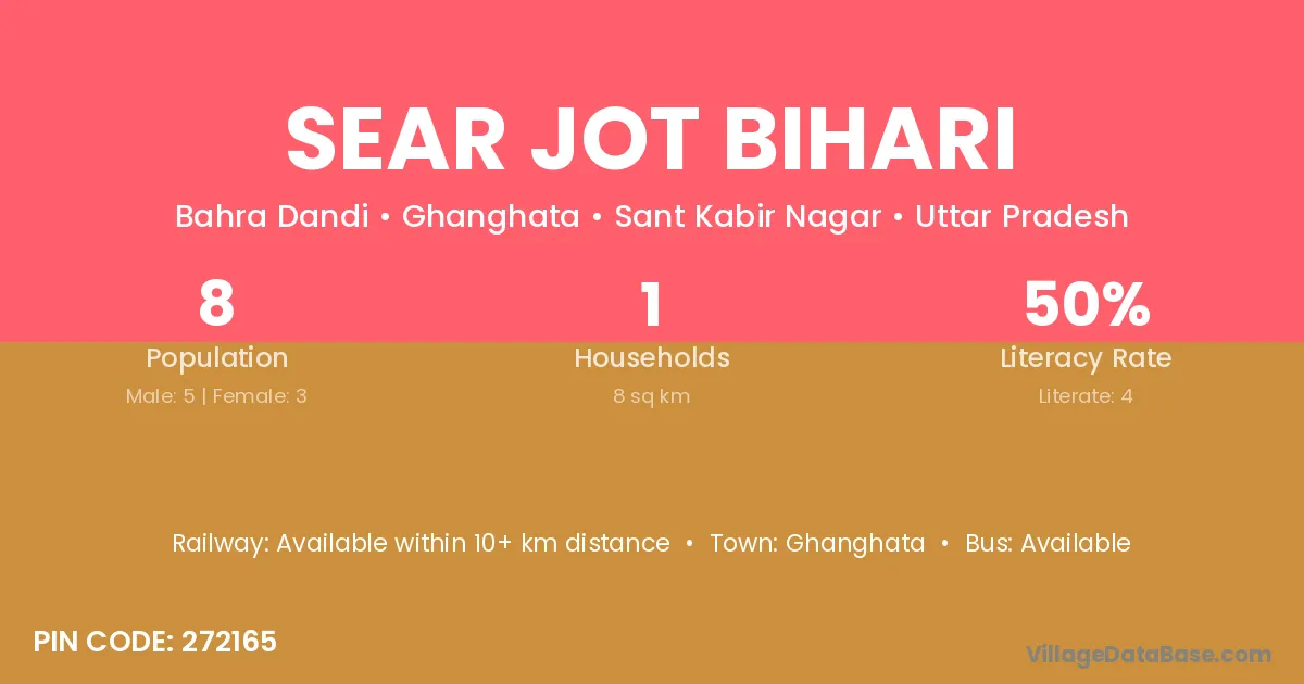 Sear Jot Bihari village has a total population of 8 people, of which 5 are males and 3 are females.
