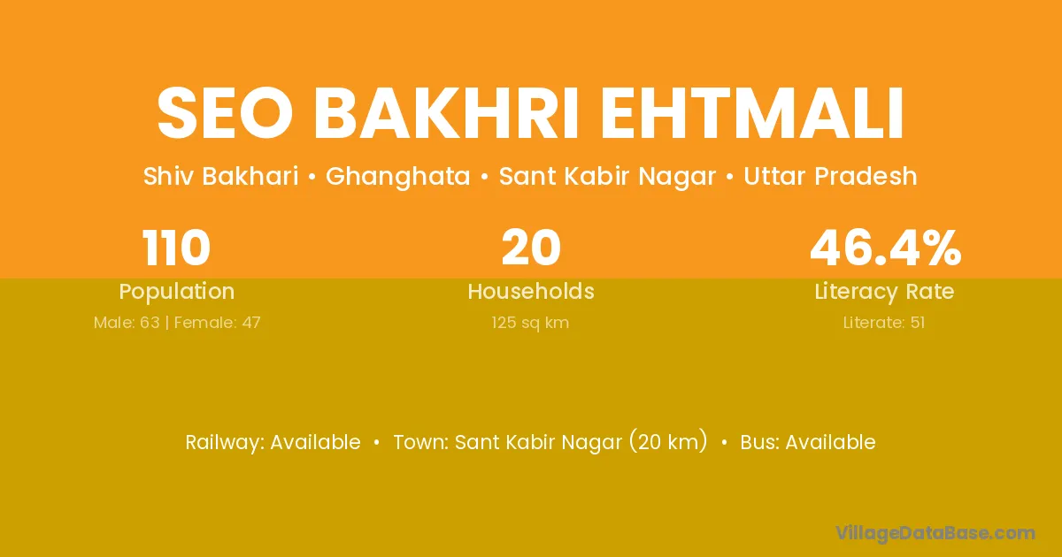 Sant Kabir Nagar (20 km) is the nearest town to Seo Bakhri Ehtmali village for major economic activities and is located approximately 20 km away.