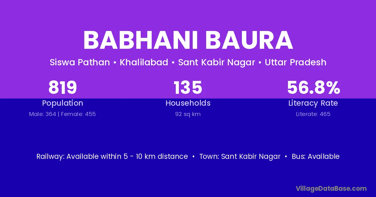 Sant Kabir Nagar is the nearest town to Babhani Baura village for major economic activities