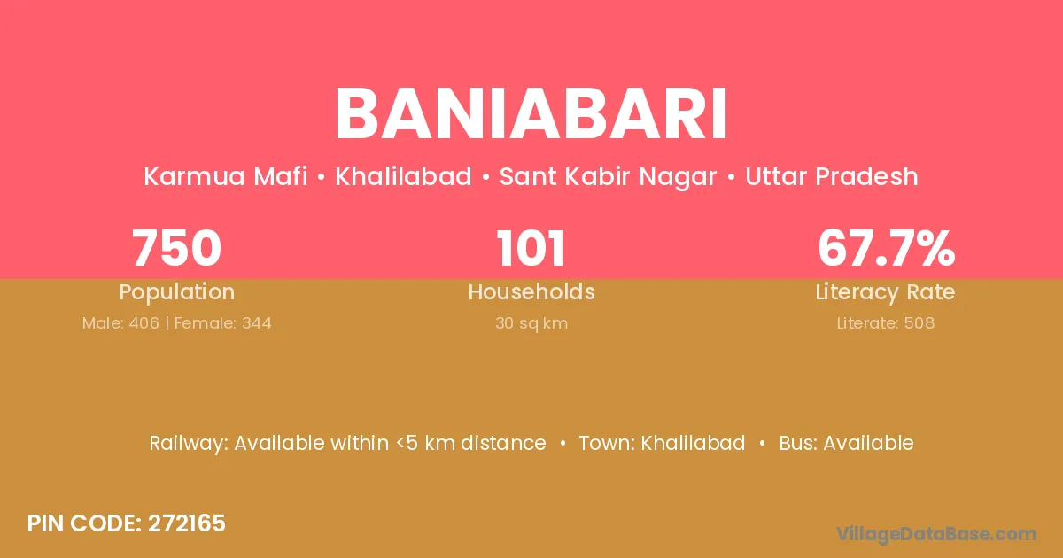 Baniabari village is located in the Khalilabad Tehsil of the Sant Kabir Nagar district in Uttar Pradesh .